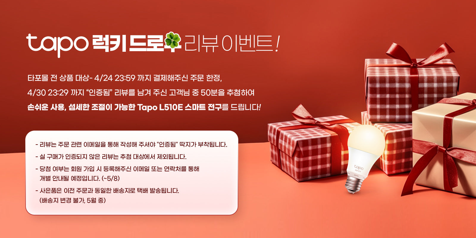 - KCC 인증번호 - 1.0&2.0:HU11362-21068B, R-C-TPN-TapoL510E / 2.20:HU110582-24001, R-C-TPN-TapoL510E